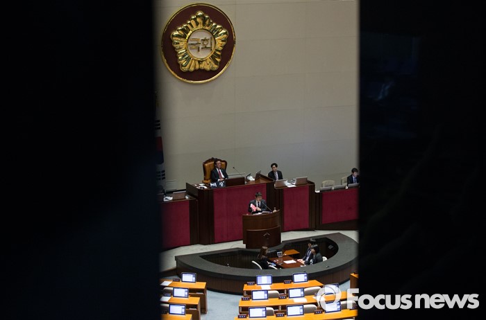 (서울=포커스뉴스) 테러방지법 직권상정에 반발해 야당의 무제한 토론(필리버스터)이 나흘째 진행되고 있는 26일 오전 서울 여의도 국회 본회의장에서 토론에 참여한 서기호 정의당 의원이 발언하고 있다.