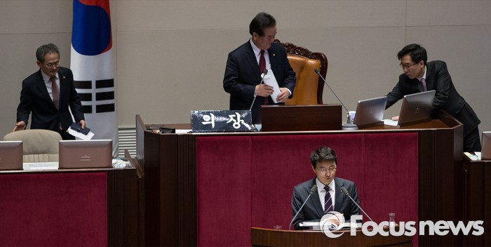 | △ 이어지는 필리버스터, 국회의장 교대 |
