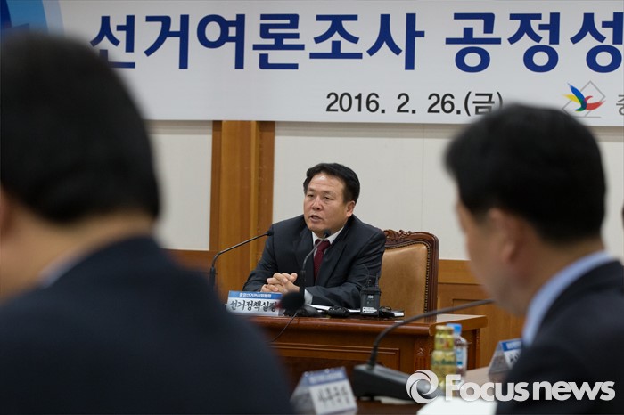 (과천=포커스뉴스) 김신기 선거정책실장이 26일 오후 경기도 과천시 중앙선거관리위원회에서 열린 선거여론조사 공정성 확보 대책회의에서 모두발언을 하고 있다.