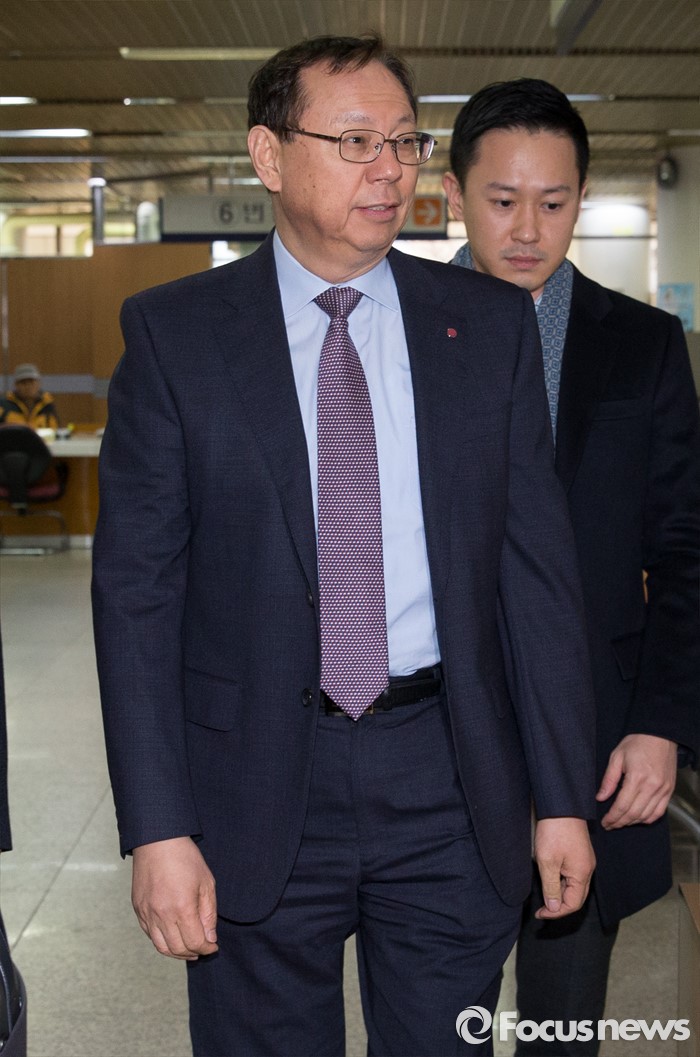 | △ 법원 들어서는 조원진 LG전자 사장 |