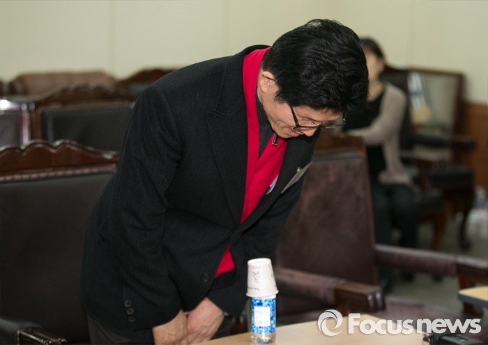 (서울=포커스뉴스) 26일 오후 서울 여의도 새누리당사에서 열린 20대 총선 공천 신청자 면접심사에 참석한 김문수 대구 수성갑 예비후보가 인사하고 있다.