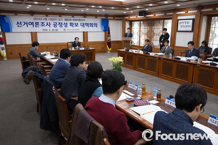 (과천=포커스뉴스) 김신기 선거정책실장이 26일 오후 경기도 과천시 중앙선거관리위원회에서 열린 선거여론조사 공정성 확보 대책회의에서 정당관계자, 주요 여론조사업체 대표자들에게 인사말을 하고 있다.