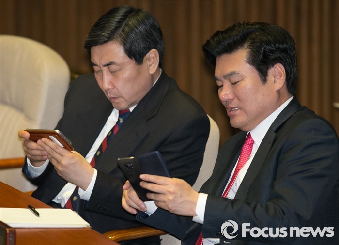 | △ 원유철-이종걸, 핸드폰에 무엇이? |