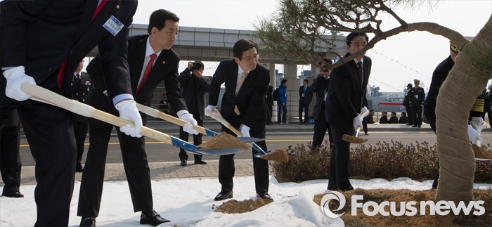 (서귀포=포커스뉴스) 황교안 국무총리가 26일 오후 제주 서귀포 제주해군기지에서 열린 '제주민군복합형관광미항' 준공식에 참석, 기념식수를 하고 있다.