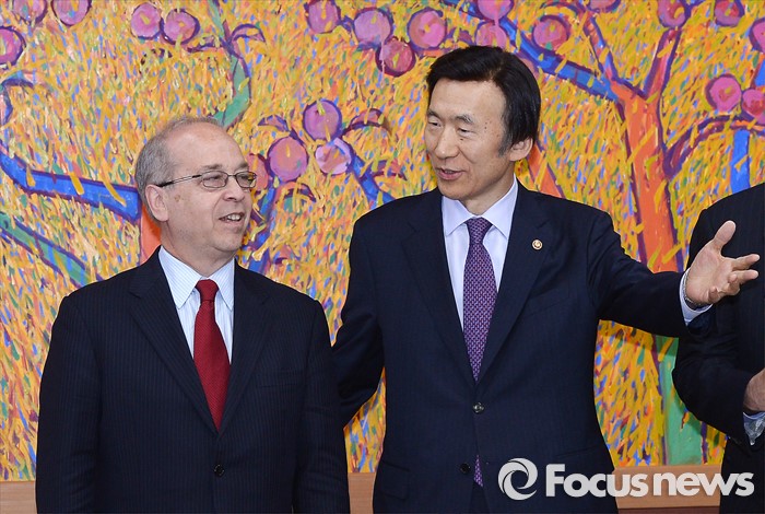 (서울=포커스뉴스) 26일 오후 서울 종로구 외교부 청사에서 윤병세 외교부 장관과 대니얼 러셀 미국 국무부 동아시아태평양담당 차관보가 대화하고 있다.