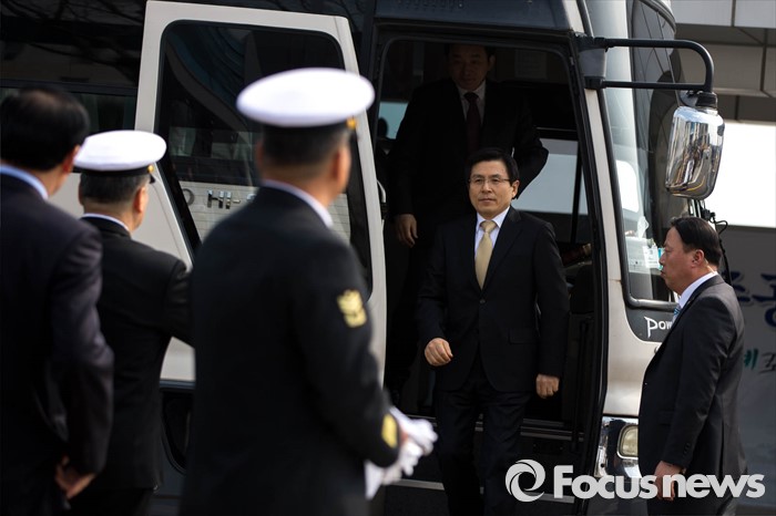 (서귀포=포커스뉴스) 황교안 국무총리가 26일 오후 제주 서귀포 제주해군기지에서 열린 '제주민군복합형관광미항' 준공식에 참석, 기념식수를 위해 차량에서 내리고 있다.