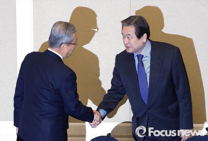 | △ 악수하는 김종인-김무성 |