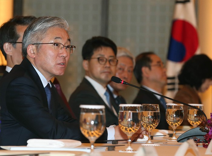 (서울=포커스뉴스) 김종덕 문화체육관광부 장관이 26일 서울 중구 조선호텔에서 열린 '호텔업계 간담회'에 참석해인사말을 하고 있다. <사진제공=문화체육관광부>