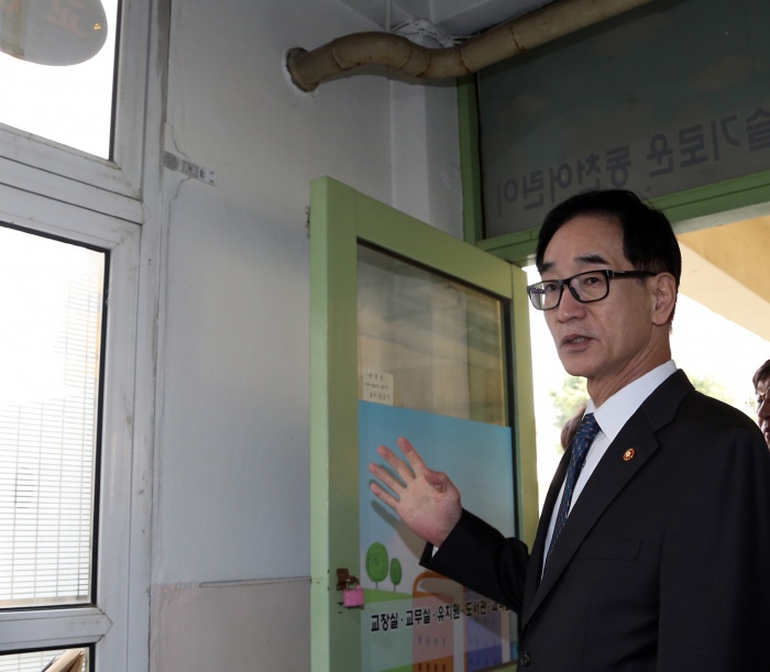 (대구=포커스뉴스) 이준식 부총리 겸 교육부장관이 26일 대구 수성구 동천초등학교를 방문, 신학기 대비 안전점검을 하고 있다. <사진제공=교육부>