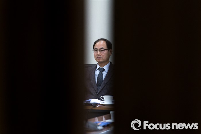 (서울=포커스뉴스) 27일 오후 서울 관악구 중앙선거관리위원회 관악청사에서 선거구획정위 전체회의에 참석한 박영수 선거구획정위원회 위원장이 회의시작을 기다리고 있다.