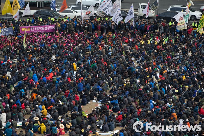 (서울=포커스뉴스) 27일 오후 서울광장에서 민주노총과 참여연대, 전국빈민연합 등 시민사회단체들이 4차 민중총궐기 집회에 참가하고 있다.