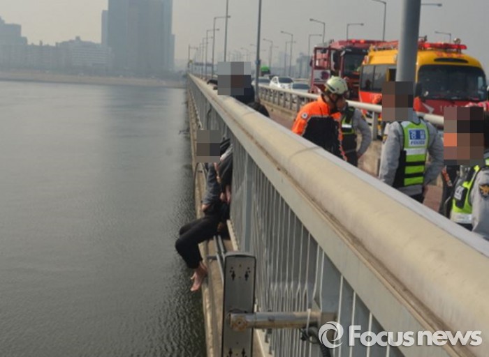 경기 일산에 거주하는 한씨는 신변을 비관해 마포대교 다리 난관을 넘어가려던 것을 운전자 유모(41)씨가 발견해 119에 신고했다.