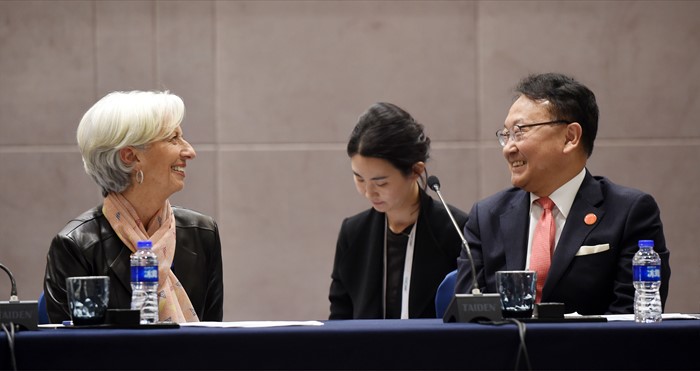 (서울=포커스뉴스) G20재무장관.중앙은행총재회의 참석차 중국 상해를 방문중인 유일호 부총리 겸 기획재정부 장관이 27일 오후(현지시간) 푸동 상글리라 호텔에서 크리스틴 라가르드 IMF총재와 면담을 갖고 있다. <사진제공=기획재정부>