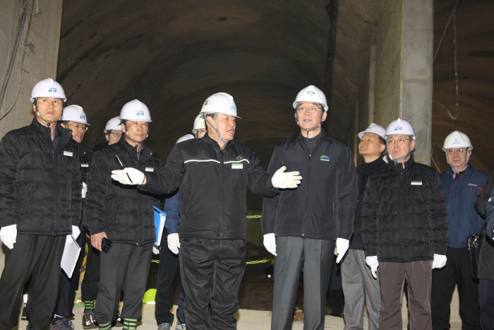 (서울=포커스뉴스) 강호인 국토교통부 장관이 27일 오후 소사∼원시 복선전철 4공구 건설현장을 찾아 안전점검을 하고 있다. <사진제공=국토교통부>