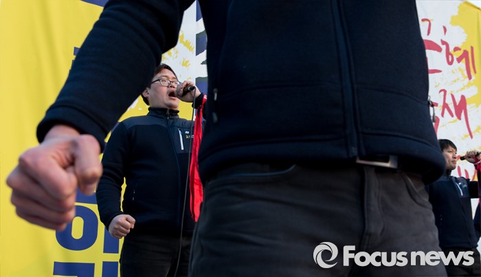 (서울=포커스뉴스) 27일 오후 서울광장에서 민주노총과 참여연대, 전국빈민연합 등 시민사회단체들이 4차 민중총궐기 집회에 참가하고 있다.