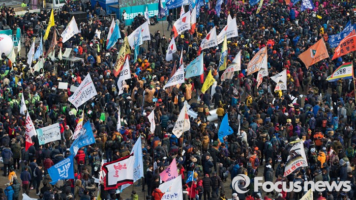(서울=포커스뉴스) 27일 오후 서울광장에서 민주노총과 참여연대, 전국빈민연합 등 시민사회단체들이 4차 민중총궐기 집회에 참가하고 있다.