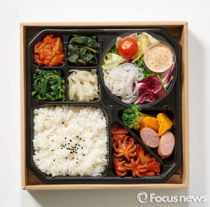 신선도 문제로 인해 도시락 반찬으로는 잘 사용하지 않는 나물의 경우 신선도를 유지하기 위해 다진마늘, 소금, 깨, 참기름의 최소한의 조미과정을 거쳤다. 샐러드를 포함한 총 7가지 반찬이 들어있어 든든한 한 끼 식사가 가능하다.