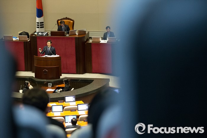 (서울=포커스뉴스) 테러방지법 직권상정에 반발해 야당의 무제한 토론(필리버스터)이 진행되고 있는 28일 오후 서울 여의도 국회 본회의 장에서 23번째 토론에 참여한 이학영 더불어민주당 의원이 발언하고 있다.