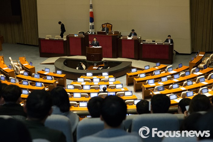 (서울=포커스뉴스) 테러방지법 직권상정에 반발해 야당의 무제한 토론(필리버스터)이 진행되고 있는 28일 오후 서울 여의도 국회 본회의 장에서 23번째 토론에 참여한 이학영 더불어민주당 의원이 발언하고 있는 가운데 시민 방청객들이 지켜보고 있다.