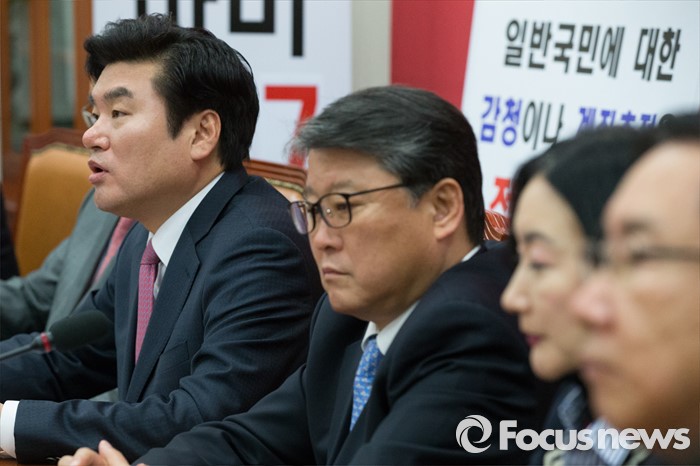 (서울=포커스뉴스) 28일 오후 서울 여의도 국회에서 열린 국회정상화 촉구 특별기자회견에서 원유철(왼쪽) 새누리당 원내대표가 발언을 하고 있다.