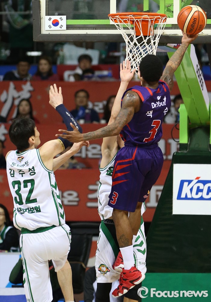 (고양=포커스뉴스) 28일 고양체육관에서 열린 2015-2016 프로농구 오리온-동부 6강 플레이오프 2차전에서 오리온 조 잭슨이 레이업슛을 시도하고 있다.