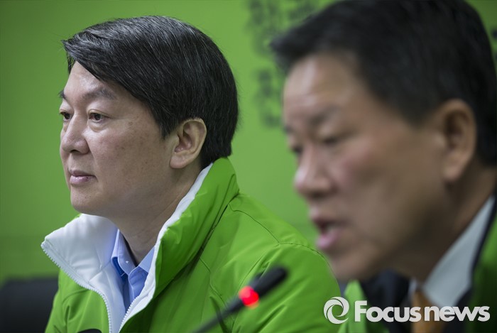 (서울=포커스뉴스) 국민의당 주승용 원내대표가 서울 마포구 국민의당 당사에서 열린 최고위원회의에서 모두발언을 하고있는 가운데 안철수 상임공동대표가 자리에 앉아 있다. 왼쪽부터 안 대표, 주승용 원내대표