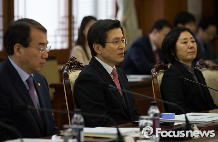 (서울=포커스뉴스) 29일 오전 서울 종로구 정부서울청사에서 열린 '제24차 국제개발협력위원회'에 자리한 황교안(가운데) 국무총리가 모두발언 하고 있다.