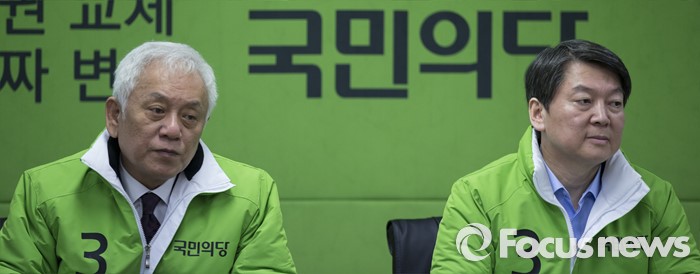(서울=포커스뉴스) 국민의당 안철수 상임공동대표와 김한길 상임공동선대위원장이 서울 마포구 국민의당 당사에서 열린 최고위원회의에 참석하고 있다.