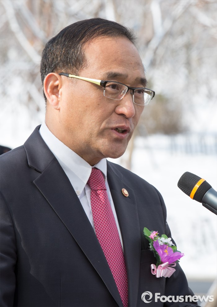 (세종=포커스뉴스) 홍윤식 행정자치부 장관이 29일 오전 세종시 어진동 대통령기록관 전시관 입구에 마련된 무궁화정원 개장식에서 인사말을 하고 있다.