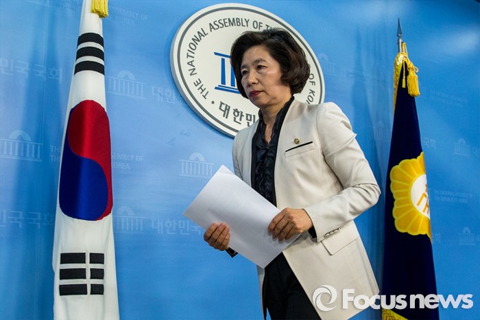 | △ 정론관 나서는 전정희 의원 |