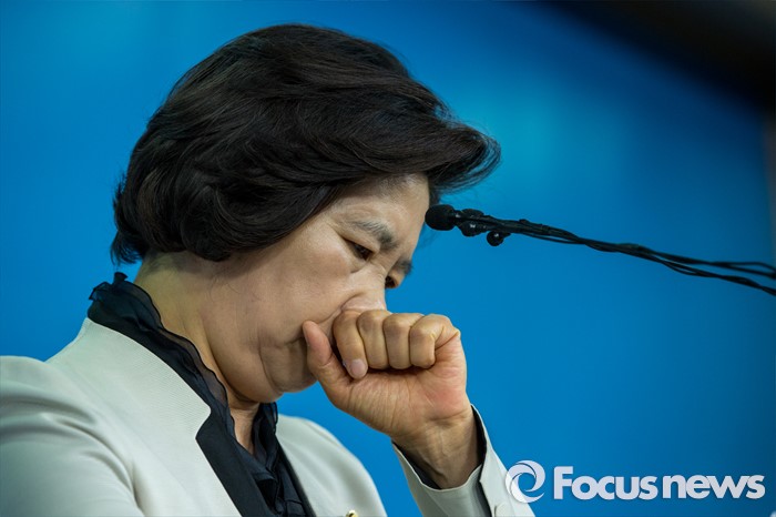(서울=포커스뉴스) 더불어민주당의 '현역의원 평가 하위 20%'에 걸려 컷오프(공천배제)된 전정희 의원이 29일 오전 서울 여의도 국회 정론관에서 탈당 기자회견을 하던 중 생각에 잠겨 있다.