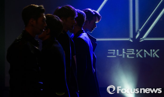 (서울=포커스뉴스) 29일 오후 서울 강남구 일지아트홀에서 신인 보이그룹 크나큰이 데뷔 쇼케이스에서 타이틀곡 'KNOCK'를 선보이고 있다.
