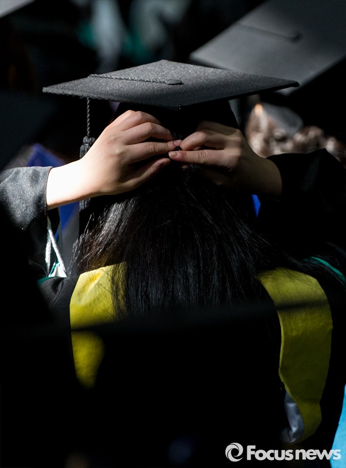 (서울=포커스뉴스) 29일 오후 서울 서대문구 이화여자대학교에서 열린 2015학년도 전기 학위수여식에 참석한 졸업생이 학사모를 고쳐 쓰고 있다.