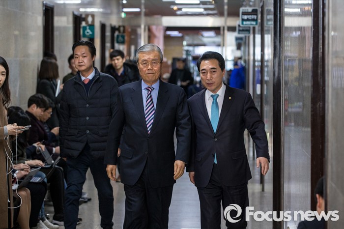 (서울=포커스뉴스) 김종인 더불어민주당 비상대책위원회 대표가 29일 오후 서울 영등포구 국회에서 열린 '당무위원회의'에 참석하고 있다. 사진 오른쪽은 박수현 대표비서실장.