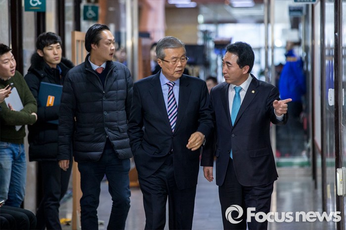(서울=포커스뉴스) 김종인 더불어민주당 비상대책위원회 대표가 29일 오후 서울 영등포구 국회에서 열린 '당무위원회의'에 참석하고 있다. 사진 오른쪽은 박수현 대표비서실장.