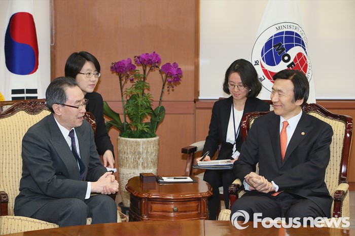 (서울=포커스뉴스) 29일 오후 서울 종로구 세종로 외교부청사에서 윤병세 외교부 장관과 우다웨이 북핵6자회담 중국 측 수석대표가 이야기를 나누고 있다.