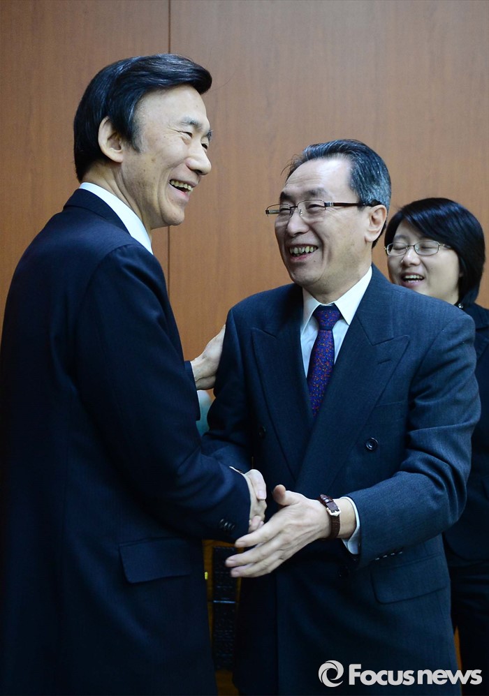 (서울=포커스뉴스) 29일 오후 서울 종로구 세종로 외교부청사에서 윤병세 외교부 장관과 우다웨이 북핵6자회담 중국 측 수석대표가 악수를 하고 있다.