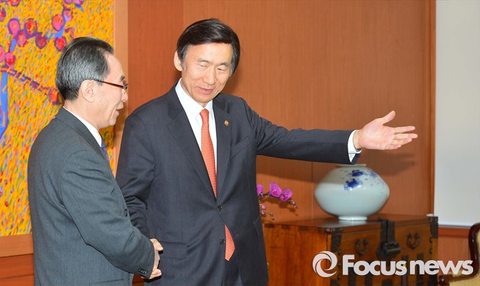 (서울=포커스뉴스) 29일 서울 세종로 정부서울청사 외교부에서 윤병세 외교부 장관(오른쪽)가 우다웨이 中 외교부 한반도사무특별대표(왼쪽)에게 자리를 안내 하고 있다.