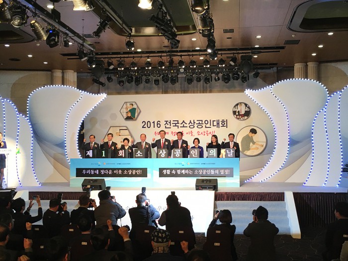 지난 26일 열린 '제1회 전국소상공인대회'에는 중소기업청 주영섭 청장과 소상공인연합회 최승재 회장, 소상공인시장진흥공단 이일규 이사장, 새누리당 정윤숙 의원, 더불어민주당 전순옥 의원, 네이버 김지현 이사, KT 장희엽 본부장, 삼성카드 박상만 전무 등을 비롯 업종별 및 시군구 단체장과 소상공인 가족까지 약 400여명이 참석했다.