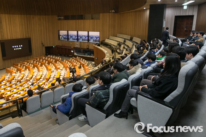 (서울=포커스뉴스) 시민들이 1일 오전 서울 여의도 국회 본회의장에서 테러방지법 저지를 위한 임수경 의원의 무제한 토론(필리버스터)을 방청하고 있다.