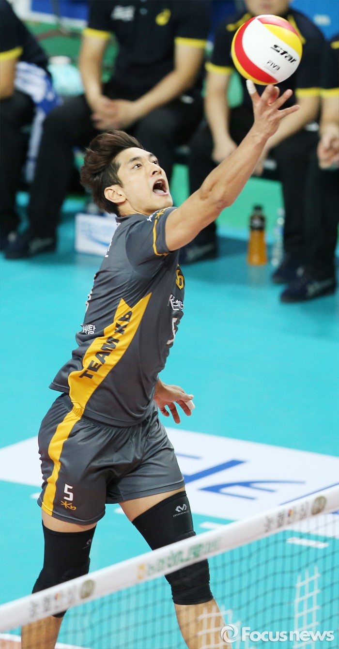 집중력을 다진 KB손해보험은 4세트부터 다시 힘을 낸 마틴을 중심으로 승부의 추를 기울였다. 5세트 시작과 함께 하현용과 김요한의 블로킹에 힘입어 먼저 5득점하며 승기를 가져왔다.(서울=포커스뉴스) 24일 장충체육관에서 열린 '2015-2016NH농협 V-리그' 남자부 우리카드-KB손해보험 경기에서 KB손보 김요한이 연타로 공을 넘기고 있다. 2015.11.24 우정식 기자