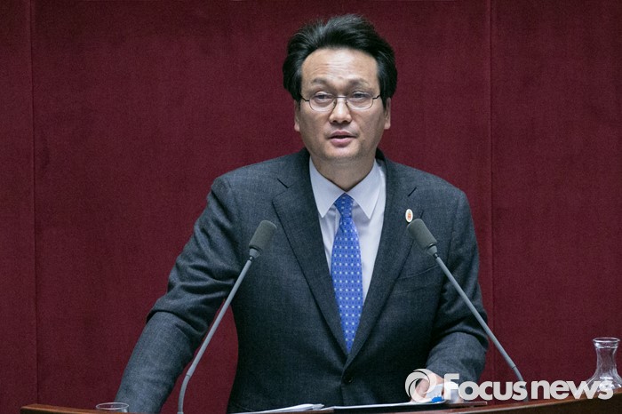 (서울=포커스뉴스) 안민석 더불어민주당 의원이 1일 오후 서울 여의도 국회 본회의장에서 테러방지법 저지를 위한 무제한 토론(필리버스터)을 하고 있다.