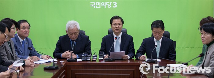 (서울=포커스뉴스) 국민의당 천정배 상임공동대표와 김한길 상임선대위원장을 비롯한 집행부가 2일 오전 서울 여의도 국회 의원회관에서 최고위원회의를 열고 있다. 왼쪽 세번쩨부터 장병완 정책위의장, 김한길 상임선대위원장, 천 대표, 주승용 원내대표