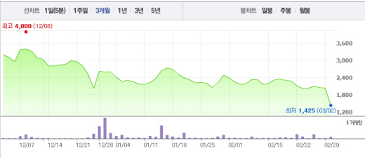 한국거래소는 2월 29일 플렉스컴 경영진의 횡령 및 배임혐의에 따른 피소설 등에 대한 조회공시를 요구했다. 답변 시한은 이날 낮 12시까지다.주가흐름<사진출처=네이버 캡쳐>