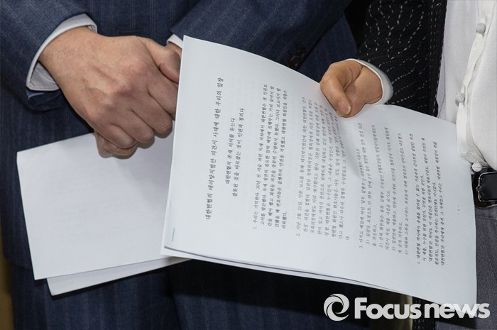 (서울=포커스뉴스) 2일 오전 서울 서초구 중앙지방법원 기자실에서 위은진 대한변호사협회 인권위원회 부위원장이 테러방지법안 의견서 사태에 관한 입장을 발표하고 있다.