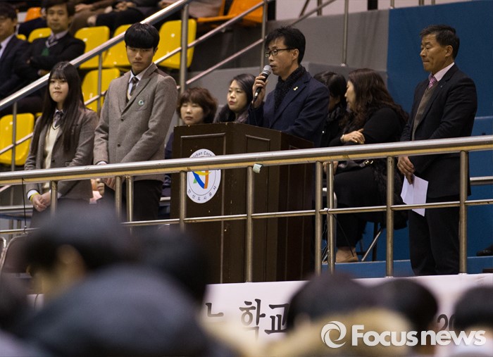 (안산=포커스뉴스) 전명선 4·16 가족협의회 위원장이 2일 오전 경기도 안산시 단원구 올림픽기념관에서 열린 단원고등학교 입학식에 참석해 '사랑하는 단원 가족들에게 드리는 글' 을 낭독하고 있다.