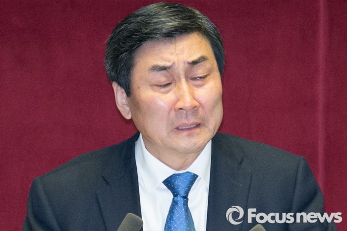 (서울=포커스뉴스) 테러방지법 직권상정에 반발해 야당이 세계 최장 기록의 필리버스터(무제한 토론)를 이어가고 있는 2일 오후 서울 여의도 국회 본회의장에서 토론에 참여한 이종걸 더불어민주당 원내대표가 발언 중 울먹이고 있다. 야당은 이날 필리버스터를 중단하고 선거법 등을 처리할 예정이다.