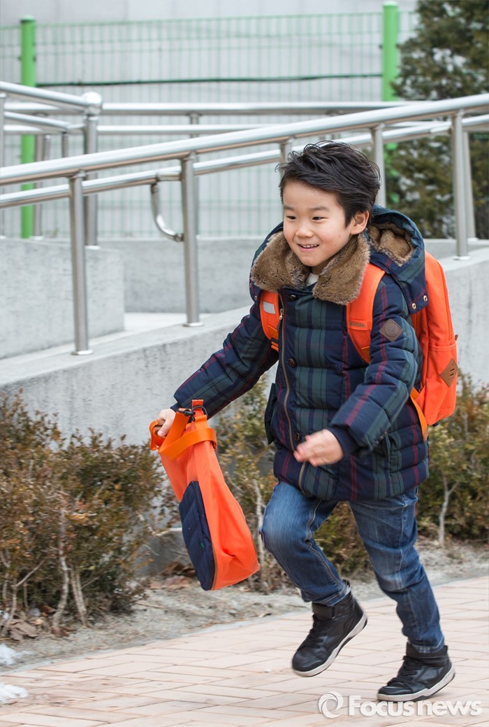 (서울=포커스뉴스) 2일 오전 서울 이태원 초등학교에서 열린 2016학년도 입학식에 참석한 신입생이 강당으로 달려가고 있다.