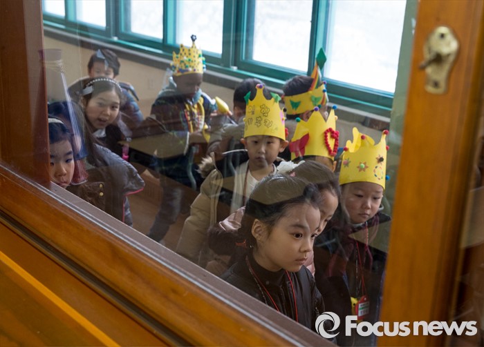 (서울=포커스뉴스) 2일 오전 서울 이태원 초등학교에서 열린 2016학년도 입학식에 참석한 어린이들이 교실을 확인하고 있다.