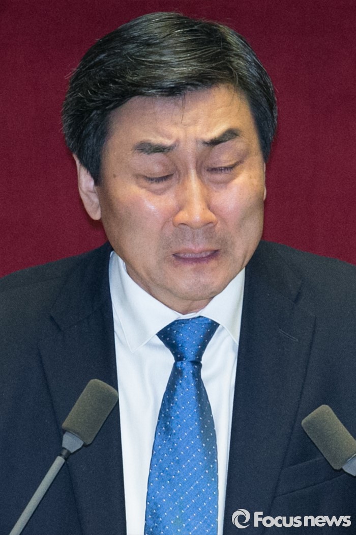 (서울=포커스뉴스) 테러방지법 직권상정에 반발해 야당이 세계 최장 기록의 필리버스터(무제한 토론)를 이어가고 있는 2일 오후 서울 여의도 국회 본회의장에서 토론에 참여한 이종걸 더불어민주당 원내대표가 발언 중 울먹이고 있다. 야당은 이날 필리버스터를 중단하고 선거법 등을 처리할 예정이다.